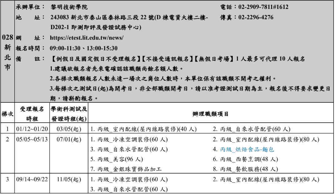 115年度即測即評及發證技術士技能檢定報名相關資訊如下,請參閱: